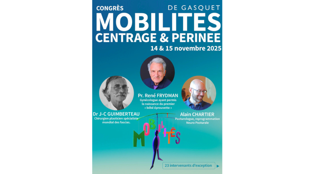 Dans cette vidéo, où l’on aborde le yoga prénatal de Gasquet, il est aussi question d’un rendez-vous important : le congrès Mobilités, centrage et périnée, désormais passé et dont vous pouvez vous procurer les replays.